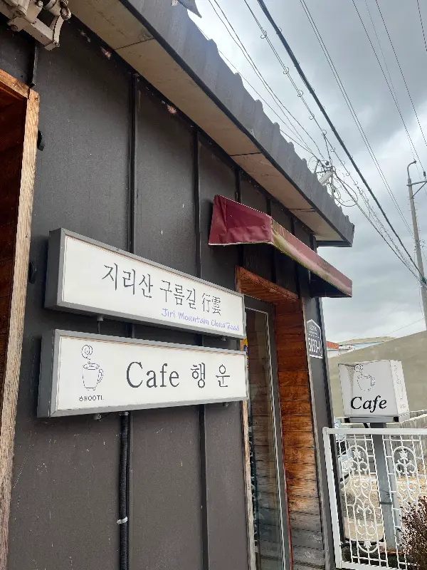 지리산 자락, ‘Cafe 행운’이라 쓰인 간판이 정겹다.