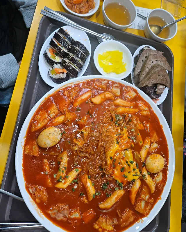 푸짐하게 차려진 분식 한 상은 보기만 해도 마음이 풍족해진다.
