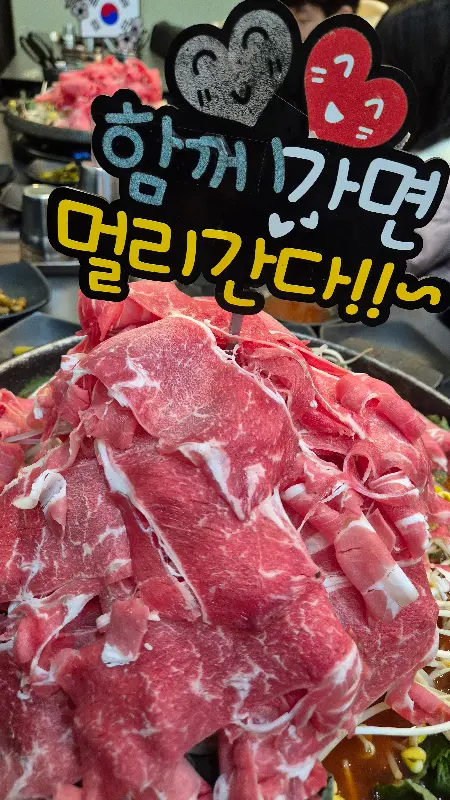 국물이 끓기 시작하자, 직원분께서 친절하게 먹는 방법을 설명해주셨다. 얇은 소고기는 샤브샤브처럼 살짝 익혀서 먹고, 콩나물과 깻잎은 국물에 적셔 함께 먹으면 더욱 맛있다고 하셨다. 말씀해주신 대로 소고기를 살짝 익혀 먹어보니, 정말 입에서 살살 녹았다. 신선한 고기의 풍미와 매콤한 국물이 어우러져 환상적인 맛을 자아냈다. 콩나물의 아삭한 식감과 깻잎의 향긋함도 더해져, 먹는 재미를 더했다.
