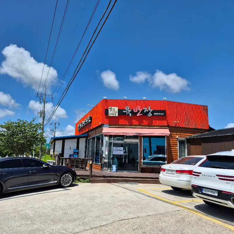 울진 맛집, 육반장육개장의 정열적인 붉은색 외관.