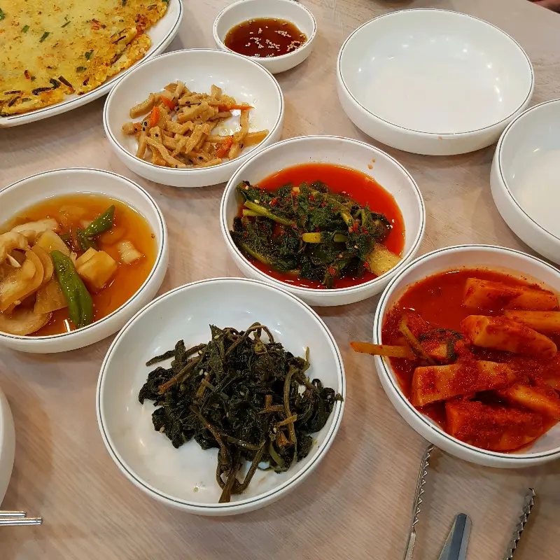 주문을 마치자, 곧바로 정갈한 밑반찬들이 테이블 위를 가득 채웠다. 윤기가 흐르는 겉절이 김치, 아삭한 열무김치, 짭짤한 깻잎 장아찌 등 하나하나 정성이 느껴지는 맛깔스러운 반찬들이었다. 특히 열무김치는 아삭하면서도 시원한 맛이 일품이었다.