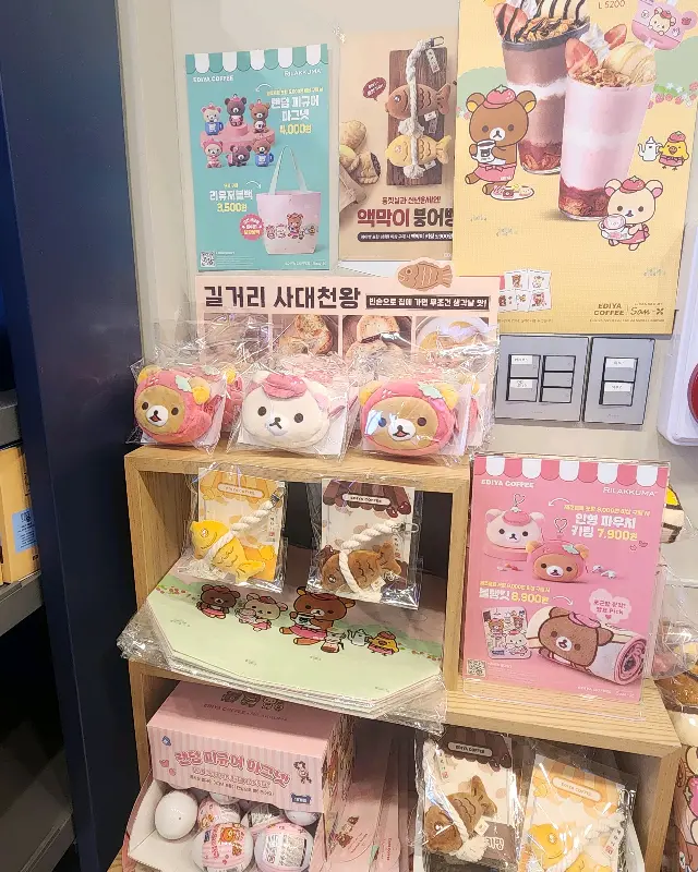 여행의 설렘과 함께 카페 문을 열었다. 깔끔한 인테리어가 눈에 들어왔다. 테이블과 의자는 편안함을 추구한 듯했고, 2층으로 올라가는 계단 옆에는 아기자기한 소품들이 놓여 있었다. 마치 작은 갤러리에 들어선 듯한 느낌. 계단 옆에는 이디야 커피에서 판매하는 다양한 MD 상품들이 진열되어 있었다. 알록달록한 색감과 귀여운 디자인의 텀블러와 머그컵은, 보는 것만으로도 기분을 좋게 만들었다. 특히, 앙증맞은 붕어빵 모양의 키링은 시선을 사로잡았다.