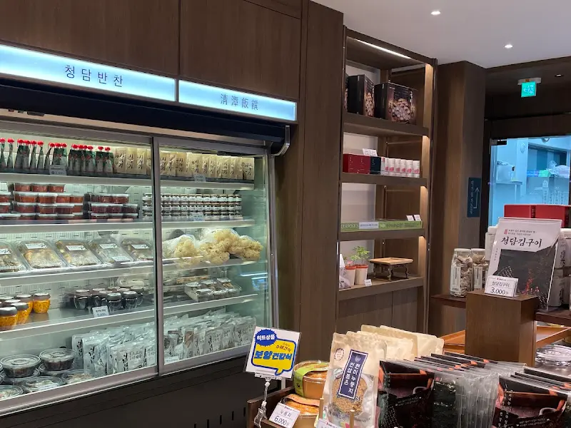 식사를 마치고 나오니, 대기실은 여전히 사람들로 북적였다. 계산대 옆에는 청담반찬이라는 코너가 마련되어 있었다. 젓갈, 김치, 장아찌 등 다양한 반찬들을 판매하고 있었는데, 깔끔하게 포장된 모습이 선물용으로도 좋을 것 같았다.