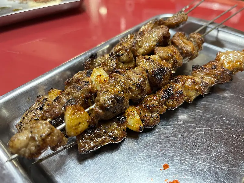 망설임 없이 양꼬치 하나를 집어 들었다. 락천각의 양꼬치는, 다른 곳과는 차별화된 매력이 있었다. 고기 특유의 잡내는 전혀 느껴지지 않았고, 육질은 믿을 수 없을 정도로 부드러웠다. 입안에 넣는 순간, 풍부한 육즙이 터져 나오면서 온 입안을 가득 채웠다. 양념이 미리 배어 있어서, 굳이 향신료를 찍어 먹지 않아도 충분히 맛있었다. 특히, 꼬치 사이에 끼워져 있는 구운 마늘은 신의 한 수였다. 알싸하면서도 달콤한 마늘은, 양꼬치의 풍미를 한층 더 끌어올렸다.