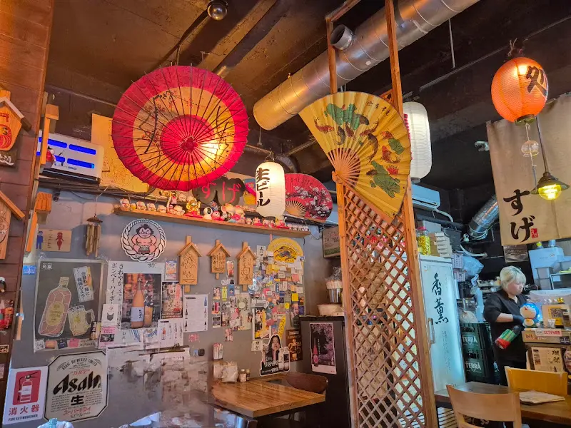 택시 기사님은 빗속을 뚫고 베테랑답게 스게 바로 앞에 내려주셨다. 궂은 날씨에도 친절을 잃지 않으신 기사님께 감사 인사를 드리고 서둘러 가게 안으로 뛰어 들어갔다. 문을 여는 순간, 습한 공기와 빗소리는 잊혀졌다. 은은한 조명 아래, 나무 테이블과 의자가 정갈하게 놓여 있었고, 벽면 가득 붙은 일본 포스터와 아기자기한 소품들이 눈길을 사로잡았다. 마치 후쿠오카 뒷골목의 작은 선술집에 순간 이동한 듯한 기분이었다.