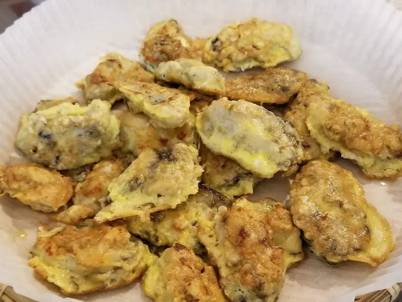 푸짐하게 쌓여 나오는 굴전의 향긋함.