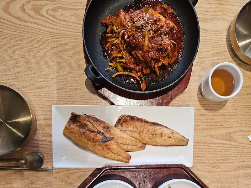 메뉴판을 보니 다양한 한식 메뉴들이 눈에 들어왔다. 양반정식, 제육쌈정식, 소불고기전골 등 푸짐한 메뉴들이 가득했다. 우리는 아들의 입맛을 고려해 돼지불고기를 주문했다. 잠시 후, 테이블 위로 상다리가 휘어질 듯한 반찬들이 쉴 새 없이 차려졌다. 뷔페식으로 운영되는 셀프바 덕분에, 먹고 싶은 반찬을 마음껏 가져다 먹을 수 있다는 점이 특히 좋았다.
