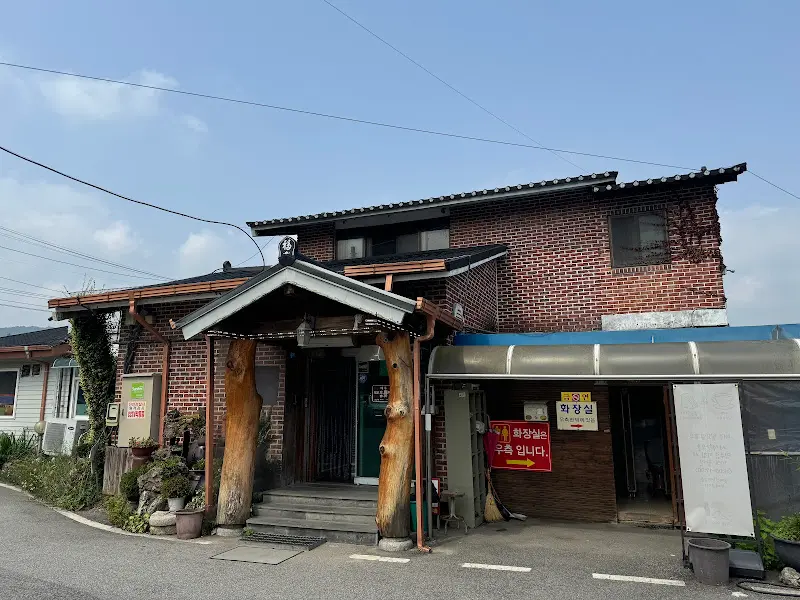 네비게이션이 가리키는 곳으로 차를 몰아 도착한 사석한우촌. 붉은 벽돌과 나무 기둥이 조화롭게 어우러진 외관이 인상적이었다. 마치 시골 할머니 댁에 방문한 듯 푸근하고 정겨운 느낌이랄까. 식당 앞에는 크고 작은 화분들이 놓여있어 소박한 아름다움을 더했다. 건물 위에 걸린 간판에는 커다랗게 “사석한우촌”이라는 글자가 쓰여 있었다. 파란 하늘을 배경으로 우뚝 솟아있는 간판을 보니, 이곳이 진정한 한우 맛집임을 직감할 수 있었다.