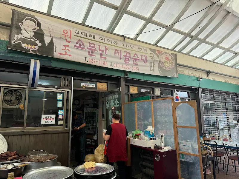 시장 안에는 몇 군데 식당이 눈에 띄었는데, 그중에서도 순대와 보리밥을 파는 집들이 많았다. 유독 눈길을 끈 곳은 ‘시골순대’라는 간판을 내건 작은 식당이었다. 동네 주민들이 삼삼오오 모여 앉아 정겹게 이야기를 나누는 모습에, 아, 여기가 바로 숨겨진 무주 맛집이구나 하는 직감이 왔다. 망설임 없이 안으로 발걸음을 향했다.