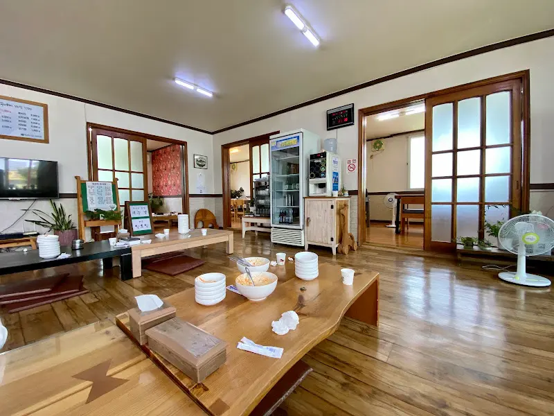 점심시간이 조금 지나서 도착했음에도 식당 안은 손님들로 북적였다. 나무로 된 테이블과 의자, 정겨운 분위기가 마치 시골 할머니 댁에 온 듯한 느낌을 주었다. 넓은 홀에는 이미 식사를 마친 손님들과 새로 찾아온 손님들이 뒤섞여 분주했지만, 묘하게 편안한 분위기가 감돌았다. 군데군데 놓인 화분들과 창밖으로 보이는 풍경은 식당에 생기를 불어넣고 있었다.