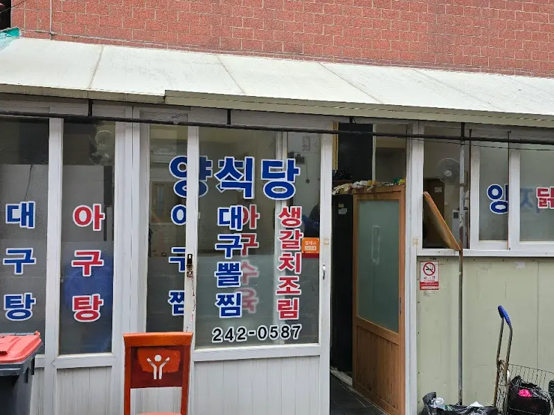오랜만에 평일 반차를 쓰고, 묵혀뒀던 숙제를 해결하듯 길을 나섰다. 오늘의 목적지는 대구. 며칠 전부터 머릿속을 떠나지 않던 아구탕을 맛보기 위해, 소문 자자한 “양지식당”을 향했다. 쨍한 햇살이 내리쬐는 오후, 드디어 식당 앞에 도착했다. 붉은 벽돌 건물에 세월의 흔적이 느껴지는 간판이 정겹다. “아구탕, 대구뽈찜”이라는 글자가 왠지 모르게 믿음직스럽게 다가왔다.