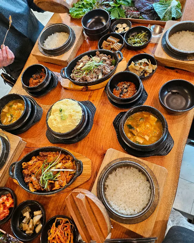상 위를 가득 채운 쌈 채소의 싱그러움에 감탄사가 절로 나왔다. 상추, 깻잎은 기본이고 이름 모를 쌈 채소들까지, 종류가 정말 다양했다. 쌈 채소는 어찌나 신선한지, 잎 한 장 한 장이 살아있는 듯했다. 쌈 채소만 봐도 이 집이 왜 철원에서 유명한 맛집인지 알 수 있었다.