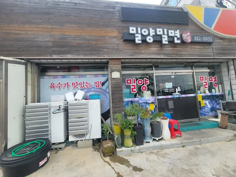 정감 가는 외관의 밀양밀면. ‘육수가 맛있는 집’이라는 문구가 눈에 띈다.