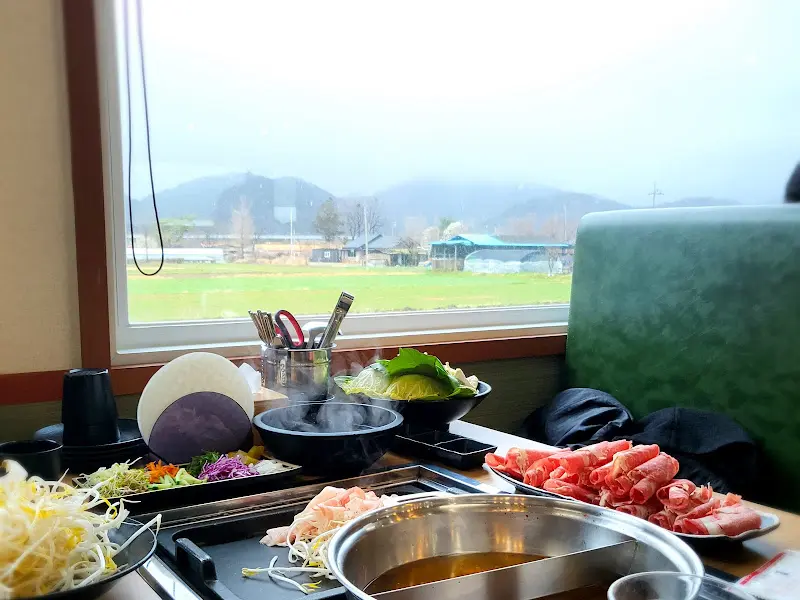 푸른 논밭을 바라보며 즐기는 샤브샤브는 그야말로 꿀맛이다.