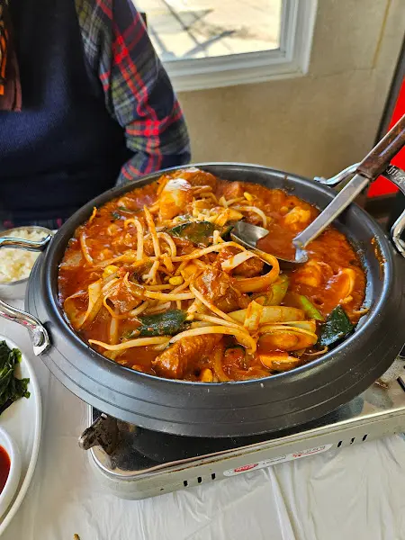 점심시간을 훌쩍 넘긴 시간이었음에도 불구하고, 식당 안은 손님들로 북적였다. 대부분은 택시 기사님들이셨는데, 그들의 얼굴에는 피곤함보다는 식사에 대한 기대감이 가득했다. 마치 오랜 단골집에 온 듯 편안하게 자리를 잡고 앉아, 서로의 안부를 묻는 모습이 인상적이었다. 나 또한 빈자리에 앉아 메뉴판을 펼쳐 들었다. 메뉴는 다양했지만, 이미 마음속으로는 정해 놓은 메뉴가 있었다. 바로 이 식당의 대표 메뉴라는 ‘불낙전골’이었다.
