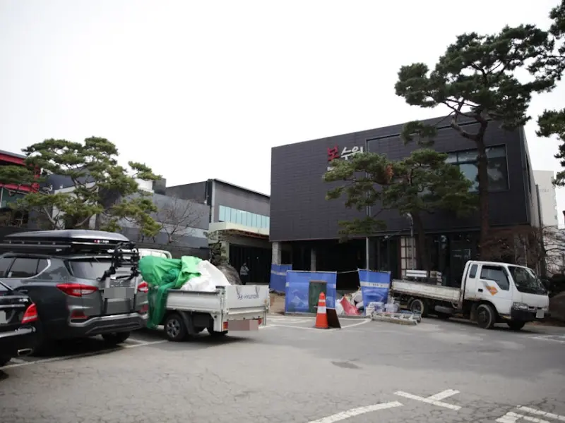 드넓은 주차장에 차를 세우고 올려다본 ‘본수원갈비’는 웅장한 자태를 뽐내고 있었다. 마치 잘 관리된 정원처럼, 푸른 나무들이 건물 곳곳에 싱그러움을 더하고 있었다. 평일 점심시간임에도 불구하고, 이미 많은 차들이 주차장을 가득 메우고 있었다. 역시 소문난 맛집은 다르구나, 하는 생각에 발걸음이 더욱 빨라졌다.