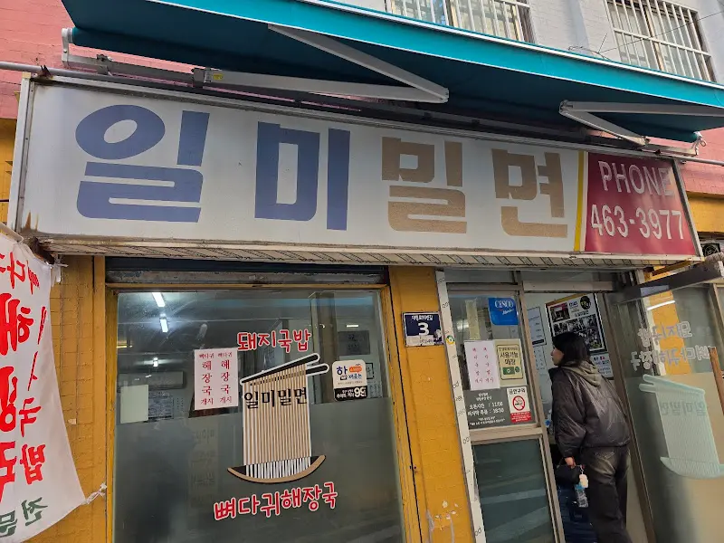 부산역에 내려 국제시장으로 향하는 버스에 몸을 실었다. 창밖으로 스치는 풍경은 낯설었지만, 왠지 모를 설렘이 가슴 한켠을 간질였다. 좁다란 골목길을 헤집고 들어가니, 드디어 모습을 드러낸 ‘일미밀면’ 간판. 세월의 흔적이 고스란히 느껴지는 외관에서, 범상치 않은 내공이 느껴졌다.