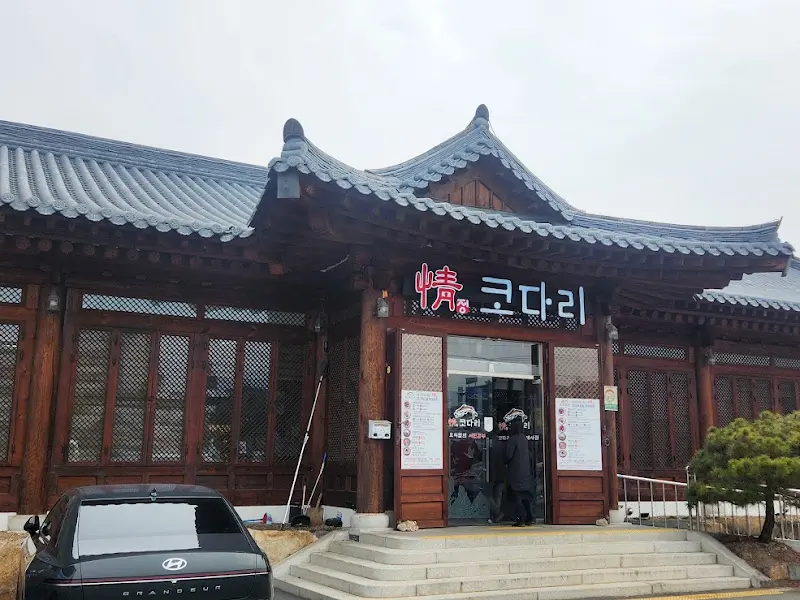 넓은 주차장에 차를 세우고, 고풍스러운 한옥 건물이 눈에 들어왔다. 기와지붕과 나무 기둥이 웅장하게 자리 잡은 모습은 마치 사찰에 온 듯한 느낌마저 들게 했다. 입구에 들어서자, 코다리 특유의 매콤한 향이 코를 찔렀다. 은은하게 풍기는 훈연 향과 어우러져 식욕을 자극하는 묘한 조화였다.
