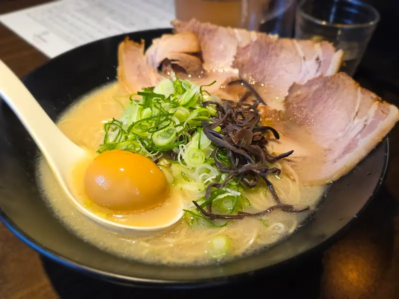 젓가락으로 면을 휘저어 육수와 잘 섞은 후, 드디어 첫 입을 맛보았다. 진하고 깊은 돼지 뼈 육수의 풍미가 입안 가득 퍼져나가는 순간, 나도 모르게 감탄사가 터져 나왔다. 9년 전 그 날의 기억이, 마치 파노라마처럼 머릿속을 스쳐 지나갔다. 얇고 탄력 있는 면은, 쫄깃한 식감으로 입안을 즐겁게 했다. 육수의 깊은 맛이 면에 잘 배어 있어, 면을 먹을 때마다 풍성한 풍미를 느낄 수 있었다.