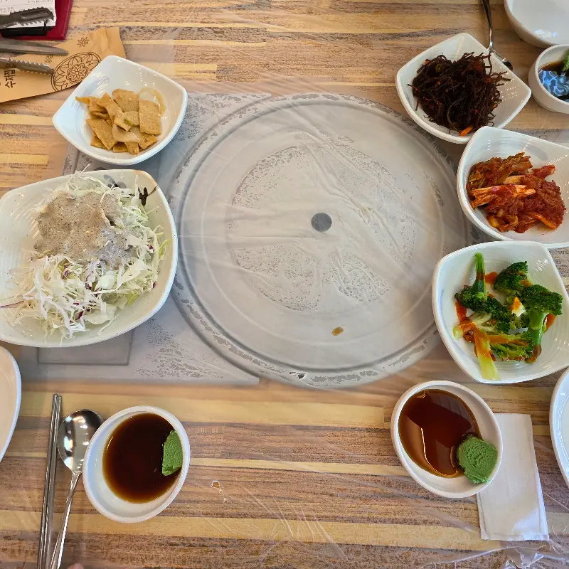 주문 후 얼마 지나지 않아 밑반찬들이 테이블 위를 가득 채웠다. 샐러드, 김치, 콩나물 등 정갈하게 담긴 반찬들은 하나하나 맛깔스러워 보였다. 특히, 갓 부쳐낸 따뜻한 부침개는 기다림에 지친 나에게 꿀맛 같은 위로가 되었다.