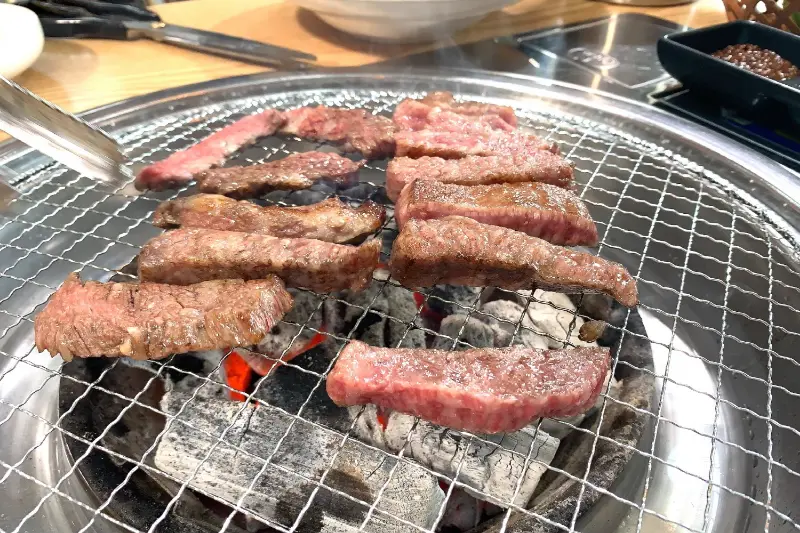자리를 잡고 앉아 메뉴판을 펼쳐 들었다. 한우 꽃등심, 살치살, 갈비살 등 다채로운 메뉴들이 눈길을 사로잡았다. 하지만 나의 레이더망에 포착된 것은 바로 ‘돼지갈비’. 숯불 향 가득한 돼지갈비에 대한 기대감을 안고, 망설임 없이 2인분을 주문했다. 잠시 후, 먹음직스러운 돼지갈비가 숯불과 함께 테이블 위로 올려졌다.