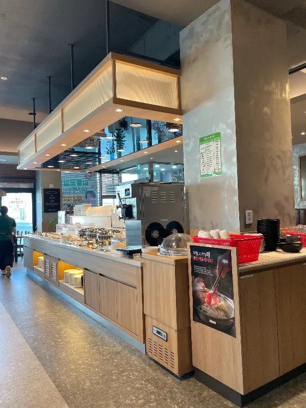 육수가 끓는 동안 샐러드바를 이용했다. 샐러드바에는 신선한 야채는 물론, 떡볶이, 닭강정, 아이스크림 등 다양한 메뉴가 준비되어 있었다. 알록달록한 색감의 샐러드 채소들이 보기 좋게 정돈되어 있는 모습이 신선함을 더했다. 갓 튀겨져 나온 듯 따끈한 닭강정은 달콤하면서도 바삭한 식감이 일품이었다. 떡볶이 역시 매콤달콤한 양념이 어우러져 шалость 입맛을 돋우었다.