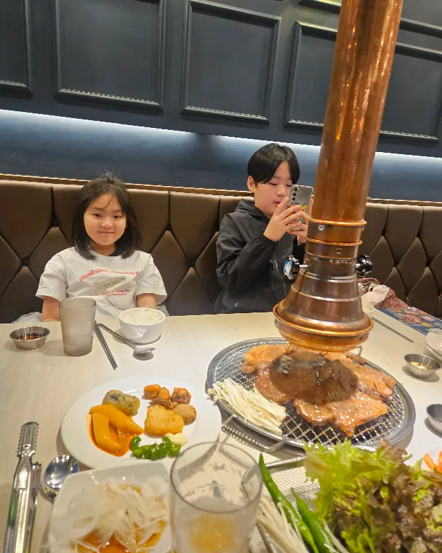 고기를 먹는 중간중간 샐러드바도 이용했다. 샐러드바에는 떡볶이, 잡채, 튀김, 샐러드 등 다양한 메뉴가 준비되어 있었다. 떡볶이는 매콤달콤한 맛이 일품이었고, 잡채는 쫄깃한 면발과 다채로운 채소가 어우러져 훌륭한 맛을 자랑했다. 튀김은 바삭바삭한 식감이 살아있어, 아이들도 좋아할 것 같았다.
