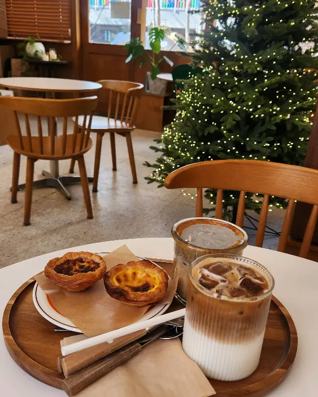 카페 문을 열고 들어서는 순간, 아늑하고 따뜻한 분위기가 나를 감쌌다. 은은한 조명 아래, 나무 테이블과 의자가 편안하게 놓여 있었다. 곳곳에 놓인 아기자기한 소품들과 식물들은 공간에 생기를 불어넣고 있었다. 마치 잘 꾸며진 친구 집에 놀러 온 듯한 편안함이 느껴졌다. 크리스마스 시즌이라 그런지, 한쪽에는 커다란 트리가 장식되어 있어 연말 분위기를 더했다. 따뜻한 조명 아래 반짝이는 오너먼트들을 보니, 괜스레 마음이 따스해졌다.
