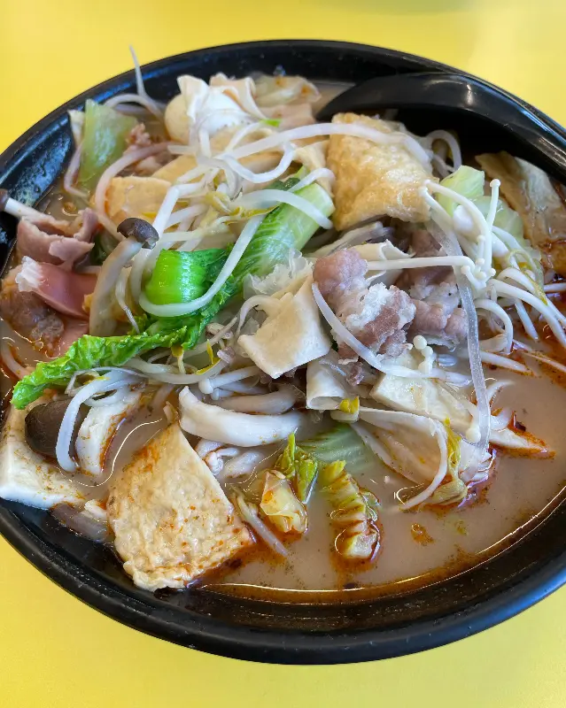 드디어, 기다리고 기다리던 마라탕이 내 앞에 놓였다. 김이 모락모락 피어오르는 붉은 국물은 보기만 해도 침샘을 자극했다. 넉넉하게 담아낸 재료들이 푸짐함을 더했고, 고소한 땅콩소스 향이 은은하게 풍겨왔다. 검은색 플라스틱 그릇에 담겨져 나온 마라탕은 노란 테이블과 대비되어 더욱 먹음직스러워 보였다.