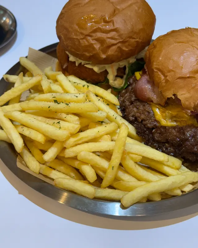 가장 먼저 눈길을 사로잡은 것은 새우버거였다. 빵 밖으로 삐져나온 통통한 새우 패티가 압도적인 존재감을 드러냈다. 윤기가 자르르 흐르는 번과 신선한 코울슬로, 그리고 듬뿍 뿌려진 소스가 환상적인 조화를 이루는 듯했다. 한눈에 보기에도 재료를 아끼지 않았다는 것을 알 수 있었다.