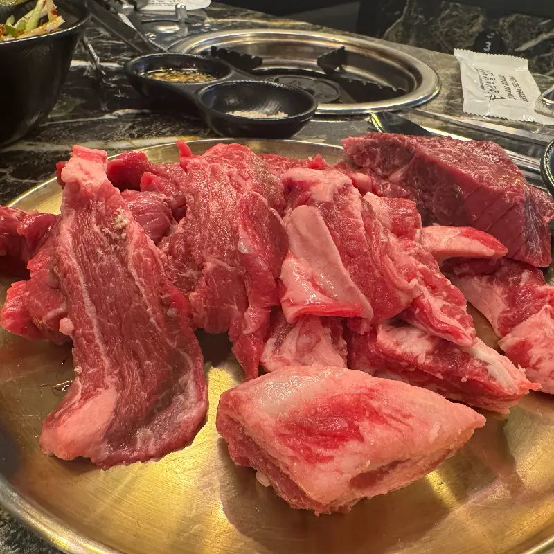 가게 앞에 도착하니, 과연 소문대로 꽤 넓고 쾌적한 공간이 눈에 들어왔다. 은은한 조명이 따뜻하게 감싸는 듯한 분위기, 벌써부터 기분이 좋아진다. 문을 열고 들어서니, 활기찬 직원분들의 인사와 함께 맛있는 고기 냄새가 코를 찔렀다. “혼자 오신 손님은 이쪽으로 모시겠습니다!” 안내받은 자리에 앉으니, 테이블마다 깔끔하게 정돈된 불판과 식기들이 놓여 있었다.