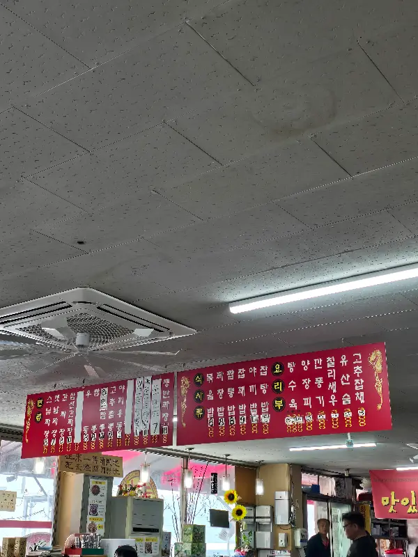 가게 안은 생각보다 넓었고, 테이블마다 손님들이 가득했다. 천장에는 큼지막한 메뉴판이 걸려 있었는데, 낡은 글씨체에서 오랜 역사가 느껴졌다. 붉은색 바탕에 노란 글씨로 큼지막하게 쓰여진 메뉴들을 보니, 마치 옛날 초등학교 앞에서 팔던 불량식품처럼 향수를 자극하는 매력이 있었다. 메뉴판을 가득 채운 짜장, 짬뽕, 탕수육 등의 기본 메뉴들 사이로 ‘스님짜장’이라는 독특한 이름이 눈에 띄었다.