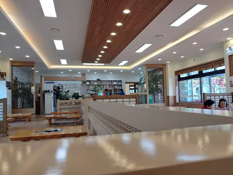 문을 열고 들어선 식당 내부는 생각보다 훨씬 넓고 쾌적했습니다. 높은 천장과 은은한 조명 덕분에 편안하고 아늑한 분위기가 감돌았습니다. 나무 소재를 활용한 인테리어는 자연스러움을 더했고, 테이블 간 간격도 넉넉하게 배치되어 있어 옆 테이블 손님들과 부딪힐 걱정 없이 식사에 집중할 수 있었습니다. 창밖으로는 초록빛 나무들이 시원하게 펼쳐져 있어, 마치 숲 속에서 식사하는 듯한 느낌을 주었습니다. 과 에서 보이는 것처럼, 넓고 환한 공간은 가족 단위 손님들이나 아기를 동반한 손님들에게도 편안한 식사를 제공할 수 있을 것 같았습니다.