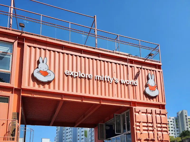 영도에 접어들자, 좁고 가파른 언덕길이 나타났다. 마치 숨겨진 보물을 찾아가는 여정처럼, 조심스럽게 핸들을 꺾어 카페를 향해 올라갔다. 운전 실력이 조금 부족하다면 택시를 이용하는 편이 좋을 것 같다는 생각이 들었다. 굽이굽이 이어진 길 끝에, 마치 동화 속에 나올 법한 오렌지색 컨테이너 건물이 눈에 들어왔다. 바로 그곳, 미피 캐릭터로 가득한 “미피카페”였다. 건물 외벽에는 “explore miffy’s world”라는 문구와 함께 귀여운 미피 그림이 그려져 있었다.