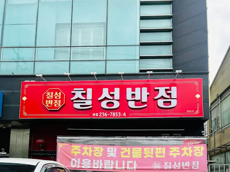 건물 앞에 도착하니, 붉은색 간판이 눈에 띄었다. 큼지막하게 적힌 “칠성반점”이라는 글자가 마치 어릴 적 동네 중국집을 연상시키는 듯했다. 간판 아래에는 “주차장 및 건물 뒷편 주차장 이용 바랍니다”라는 안내문이 적혀 있었는데, 주변이 혼잡한 것을 감안하면 넉넉한 주차 공간은 큰 장점이었다. 건물 2층으로 올라가는 길, 왠지 모를 설렘이 느껴졌다. 마치 시간 여행을 떠나는 기분이었다.