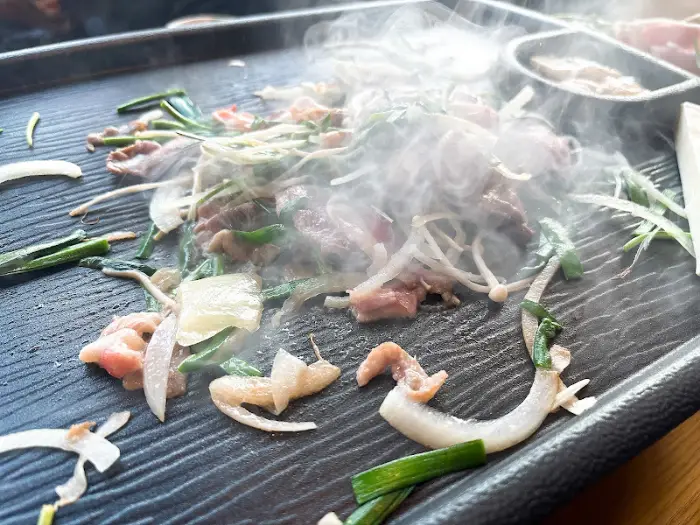처음 맛본 건 역시나 이 집의 자랑거리인 오리 차돌구이였어요. 얇게 썬 오리 차돌이 불판 위에서 지글지글 익어가는 모습이란! 김이 모락모락 피어오르는 연기 사이로 보이는 오리고기의 윤기는 정말 먹음직스러웠어요. 깻잎이나 쌈무 위에 살짝 올려 한 쌈 싸 먹으면, 그 맛이 정말 일품이에요. 입안 가득 퍼지는 고소한 풍미와 아삭한 채소의 조화가 어찌나 좋은지, ‘아이고, 이 맛 좀 봐라!’ 저도 모르게 탄성이 터져 나왔답니다.