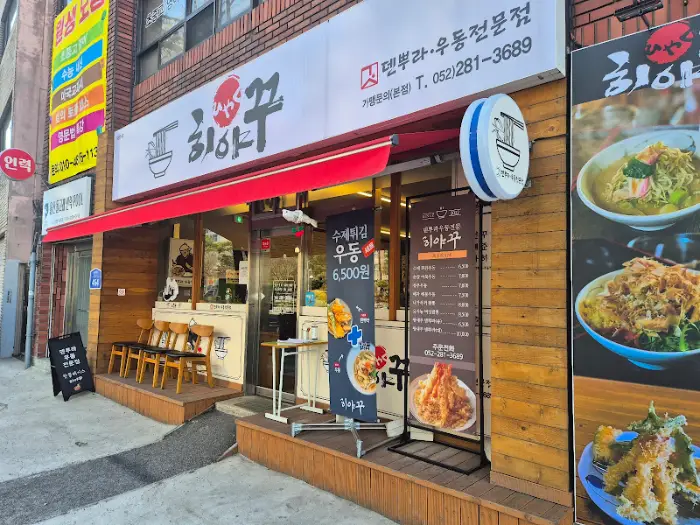 처음에는 그냥 지나가려 했는데, 길가에 세워진 입간판에 ‘우동 6,500원’이라고 쓰여 있는 걸 보고 발걸음을 멈췄어. 아니, 요즘 물가에 우동이 6,500원이라니. 일단 가격부터가 너무 착해서 ‘여기 뭐지?’ 싶었지. 가게 앞에는 딱 봐도 일본 느낌 물씬 풍기는 나무 테이블이랑 의자들이 놓여 있었는데, 괜히 설레더라고.