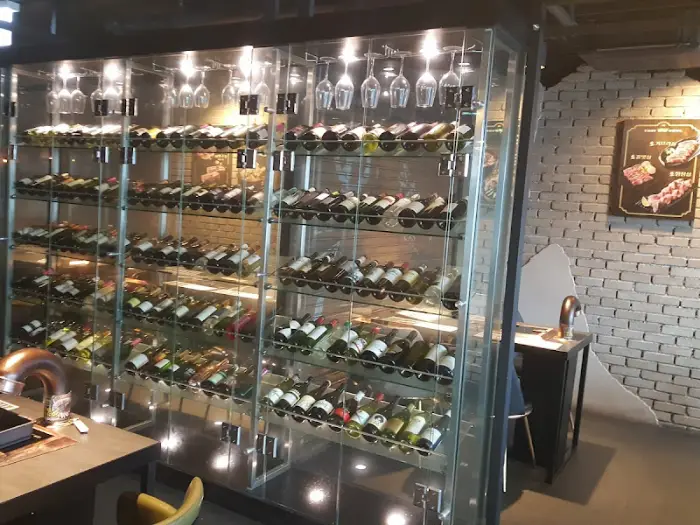 문을 열고 들어서자, 세련되면서도 아늑한 실내 공간이 저를 맞이했습니다. 은은하게 퍼지는 조명은 공간에 따뜻함을 더했고, 깔끔하게 정돈된 테이블과 의자들은 편안한 식사를 위한 준비를 마친 듯했습니다. 벽면에는 와인병과 와인잔이 그려진 감각적인 아트워크가 걸려 있어, 이곳이 단순한 고깃집을 넘어 와인과 함께 근사한 식사를 즐길 수 있는 공간임을 짐작게 했습니다.