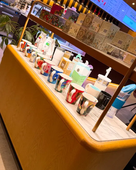 문을 열고 들어서는 순간, 은은한 커피 향이 코끝을 간질였습니다. 갓 내린 원두의 고소함과 어우러진 달콤한 향은 지친 몸과 마음에 활력을 불어넣는 듯했습니다. 가게 안은 나무 소재의 따뜻한 인테리어와 편안한 조명이 조화롭게 어우러져 아늑하고 정돈된 분위기를 자아냈습니다. 벽면을 가득 채운 다양한 디자인의 컵과 텀블러들은 마치 예술 작품처럼 느껴졌고, 그 자체로 공간에 생기를 더했습니다.