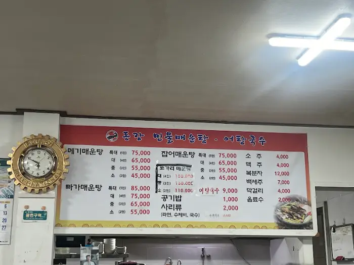무엇을 주문할까 메뉴판을 훑어보니, 이곳의 대표 메뉴는 단연 민물 매운탕과 어탕국수였다. 주변을 둘러보니 대부분의 손님들이 어탕국수를 드시고 계셨다. 하지만 나의 시선을 사로잡은 것은 바로 큼지막한 냄비에 팔팔 끓고 있는 매운탕이었다. 짙은 붉은색 국물 위로 겹겹이 쌓인 푸른 채소와 뽀얀 수제비, 그리고 펄떡이는 민물고기의 모습은 그 자체로 예술이었다.