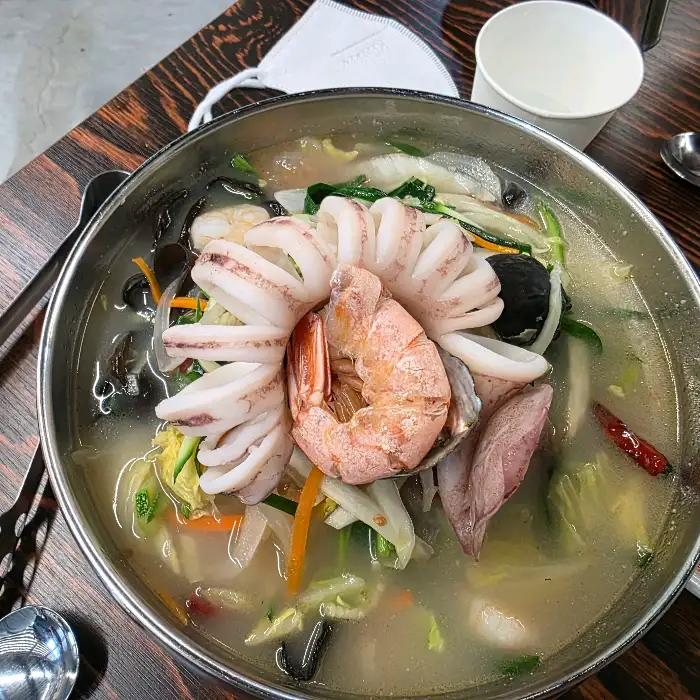 큼직한 오징어, 전복, 새우 등 다양한 해산물이 듬뿍 들어간 백짬뽕의 풍성함.