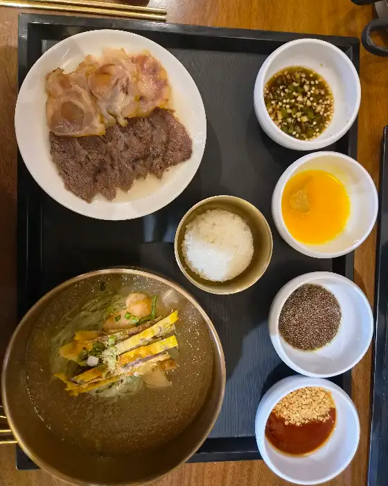 사진으로만 봐도 그 푸짐함이 느껴지시죠? 밥 한 공기도 따로 나오는데, 이걸 그냥 먹기엔 아쉽죠. 남은 냉면 육수에 찰밥을 그대로 말아 먹으니, 이게 또 얼마나 든든하고 맛있는지 몰라요. 뜨끈한 국물에 말은 밥은 언제나 옳잖아요. 냉면으로 깔끔하게 마무리하는 줄 알았는데, 밥까지 먹고 나니 정말 든든한 한 끼가 되었습니다.
