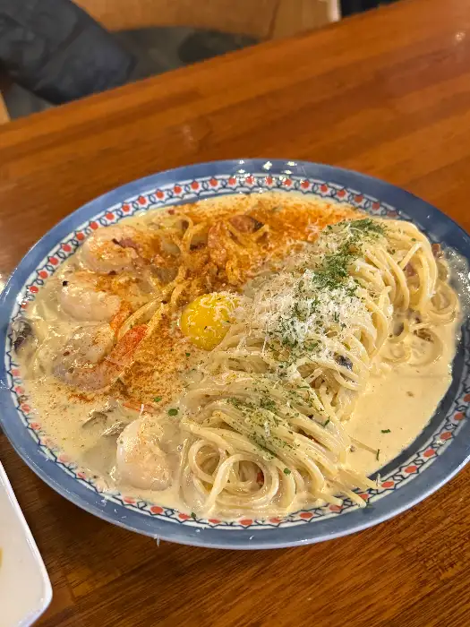 특히 이 메뉴를 즐길 때, 가운데 올려진 노른자를 톡 터뜨려 소스와 함께 비벼 먹는 순간, 그 풍미는 배가 되었습니다. 노른자의 부드러움이 크림소스의 풍부함을 더욱 끌어올렸고, 전체적인 맛의 깊이를 더했습니다. 마치 캔버스 위에 신선한 물감을 덧입힌 듯, 시각적으로도, 미각적으로도 황홀한 경험이었습니다.