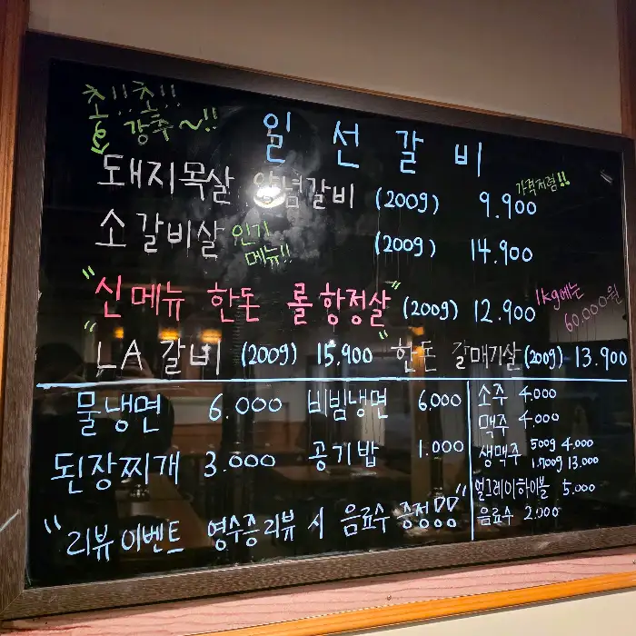 개인적으로 소갈비살의 신선함과 부드러움, 그리고 돼지 목살 양념갈비의 달콤함이 특히 인상 깊었다. 또한, 빼놓을 수 없는 메뉴는 바로 ‘LA갈비’인데, 처음 시도해 보았지만 달달하면서도 양념이 잘 배어 있어 밥반찬이나 술안주로도 제격이었다. 다음에 방문하게 된다면 LA갈비 1kg을 통째로 시켜보고 싶다는 생각이 강하게 들었다.