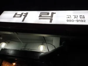 어스름한 저녁, 퇴근길 발걸음은 자연스레 번동 골목 어귀로 향했다. 며칠 전부터 머릿속을 떠나지 않던 벼락고깃집. 간판 불빛…