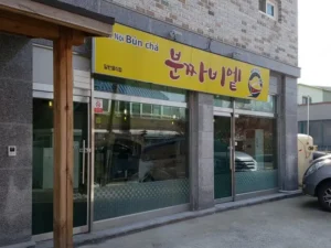 진천의 작은 골목길, 평소에는 잘 다니지 않던 길을 걷다가, 노란색 간판이 눈에 띄었다. “Noi Bun cha 분짜비에”…